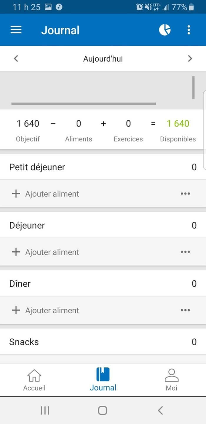 MyFitnessPal Vous désirez garder un journal quotidien de votre alimentation ? MyFitnessPal est LA référence en matière de journal alimentaire. En vous abonnant on vous questionne sur votre objectif : perte de poids, prise de masse, ou suivi alimentaire. La version gratuite convient à la plupart des profiles. On vous propose un quota de calories selon votre objectif, et vous pouvez tenter de respecter ce quota. Vous pouvez scanner le code barre de la plupart des aliments, et son utilisation est vraiment facile ! On peut également se connecter avec nos amis, et s’encourager. En faisant des activités physiques, vous pouvez également obtenir des calories supplémentaires que vous pouvez utiliser pour vous permettre un petit extra.
