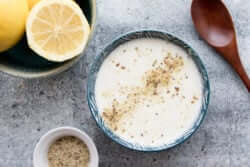 Préparation : 5 minutes Rendement : 1 Ingrédients : ¼ tasse (60 ml) de yogourt grec 0% à la vanille ½ tasse (125 ml) de yogourt grec nature 0% ¼ tasse (60 ml) de boisson d'amande non sucrée ½ c. à thé (2,5 ml) de miel (je réduis à ½ c. à thé (2,5 ml)) 1 c. à thé (5 ml) de Mélange Coupe Faim 2.0 Le zeste et le jus d'un demi citron Préparation :