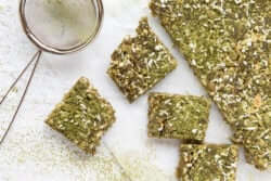 1 Carré : CALORIES : 170 kcal | PROTÉINES : 4 g | GLUCIDES : 18 g | GRAS TOTAUX : 9 g | GRAS SATURÉS : 1.5 g | GRAS TRANS : 0g | SUCRE : 12,6g | FIBRES : 2 g | SODIUM : 2 mg Pour vous procurer le Go Matcha! Cliquez ici!