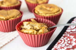 Préparation : 20 minutes Cuisson : 30 minutes portion : 8 Ingrédients 1 tasse (250 ml) de patates rouges cuites, écrasées ½ tasse (125 ml) de dattes sans noyau, hachées 1/3 tasse d'eau chaude 2 œufs 1 c. à soupe (15 ml) d'essence de vanille Préparation Faire cuire les patates et les écraser. Préchauffer le four à 350°F. Mettre les dattes dans l'eau chaude et laisser tremper environ 10 minutes. Mettre les œufs et les dattes (incluant l'eau) dans un mélangeur. Pulser jusqu'à ce que le mélange devienne crémeux. Incorporer les pommes de terre et la vanille. Bien mélanger. Verser dans 8 moules à muffins en silicone. Cuire environ 30 minutes. L'intérieur restera mi-cuit. CALORIES : 130 kcal | PROTÉINES : 3 g | GLUCIDES : 26 g | SUCRES : 21 g | GRAS TOTAUX : 2 g | GRAS SATURÉS : 0.5 g | GRAS TRANS : 0,1g | FIBRES : 2 g | SODIUM : 60 mg