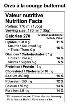- 1 ½ tasse (300g) tasse d'orzo