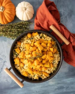 - Retirer du feu et incorporer le parmesan. Servir et garnir de courge rôtie.