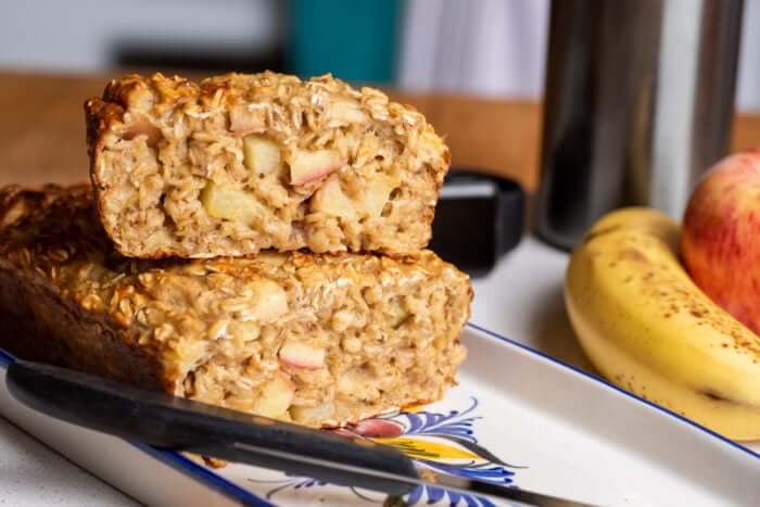Pain aux pommes, bananes et flocons d’avoine Préparation : 50 minutes Portions : 4 portions
