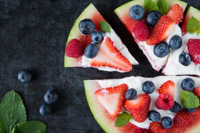 Pizza de melon d'eau Rendement: 6 portions Préparation: 15 minutes
