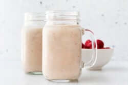 Préparation : 5 minutes Rendement : 2 Ingrédients : 2 tasses (500 ml) de lait de cajou ½ tasse (125 ml) de fraises surgelées ½ tasse (125 ml) de framboises surgelées 1 c. à soupe (15 ml) de Go Matcha! 1 tasse (250 ml) de yogourt grec nature 0% Préparation :