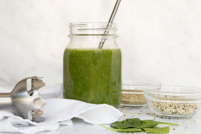 - Dans un mélangeur, mettre tous les ingrédients et mélanger jusqu’à consistance lisse