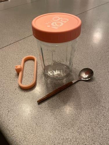 Le caoutchouc du couvercle n’est pas résistant pour l’un des bocaux . La cuillère ne tient pas bien et la forme .. je ne l’aime pas vraiment Mais j’aime la grosseur du bocal